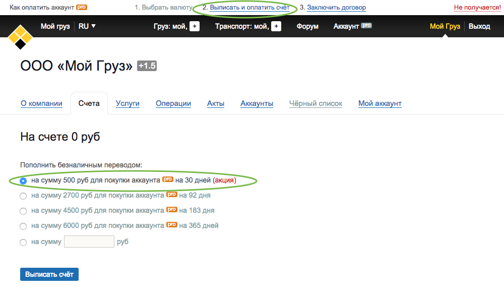 3. Выписать и оплатить счет.